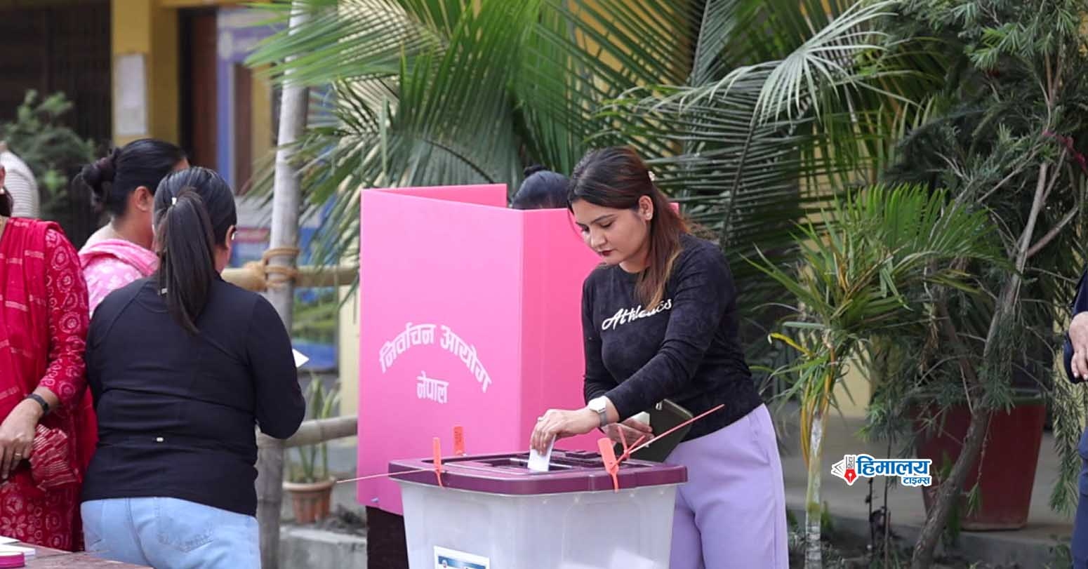 Kathmandu, March 5: Nepali Congress President Gagan Kumar Thapa, exercised his right to vote at the Mayurkunda Polling Centre at Maitidevi Temple in Kathmandu.